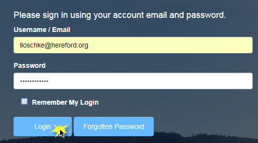 Note: If you have forgotten what email address you used when you signed up or if you no longer have access to that email address, contact the AHA office at (816) 842-3757 or email MyHerd@hereford.org